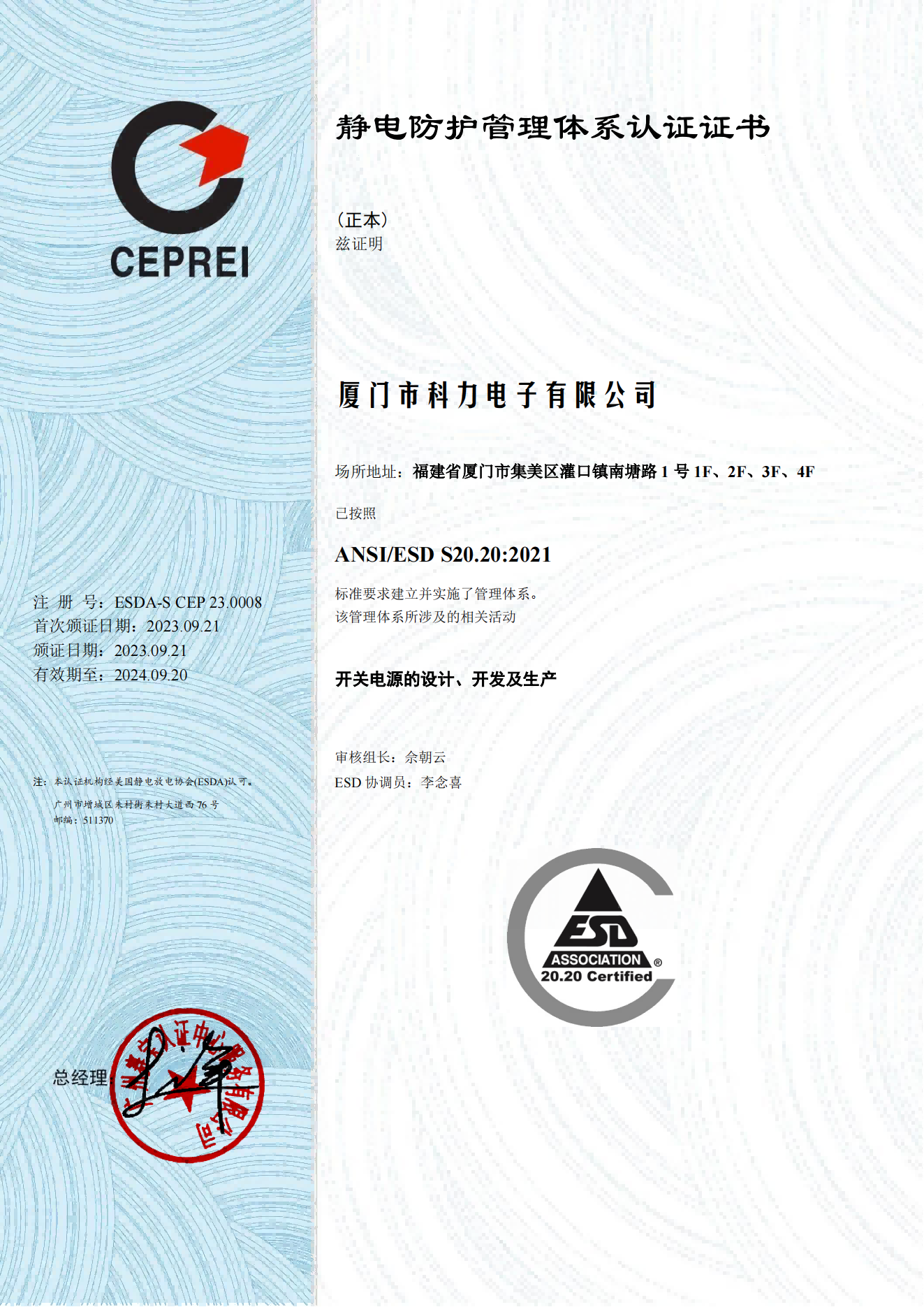 --ANSI/ESD S20.20:2021静电防护管理体系认证