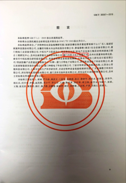 热烈祝贺厦门市科力电子有限公司成为国家标准GB/T 38367-2019《机械安全 点燃危险的风险评估》的起草单位!
