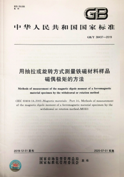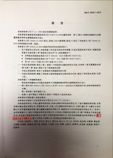 热烈祝贺厦门市科力电子有限公司成为国家标准GB/T 38437-2019《用抽拉或旋转方式测量铁磁材料样品磁偶极矩的方法》的起草单位!