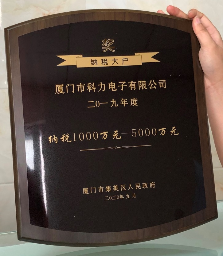 热烈祝贺公司获得厦门市集美区政府颁发 纳税1000万元-5000万元奖牌!