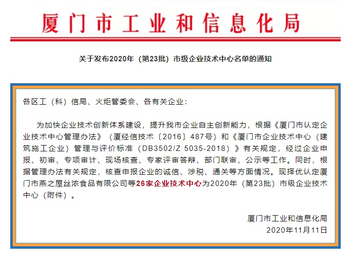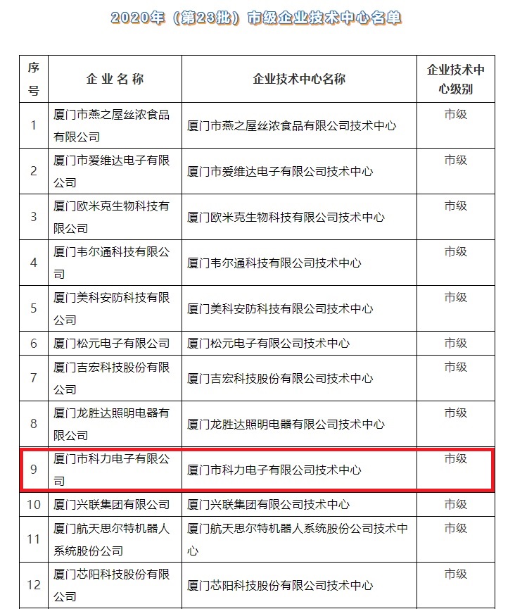 热烈祝贺公司取得厦门市企业技术中心认定荣誉!