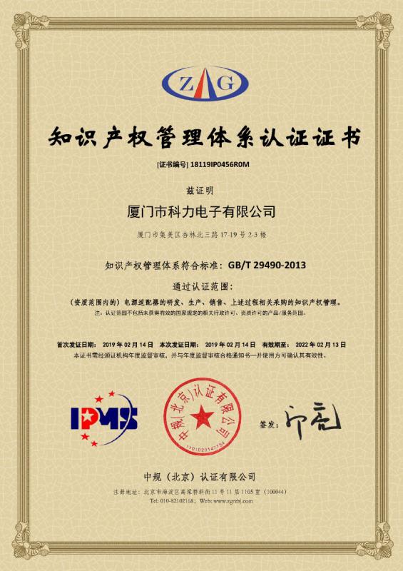 热烈祝贺公司2019年2月获得“知识产权管理体系认证证书”