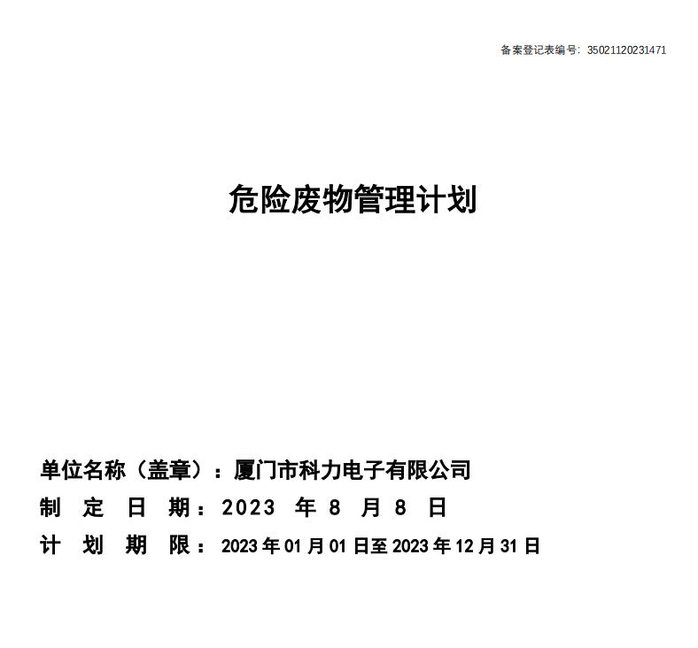 危险废物管理计划