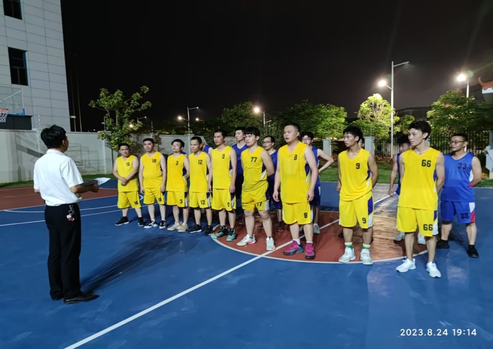 为了使本次篮球赛能够顺利展开, 8月15日16:30在篮球场进行了隆重的开幕仪式。首先,各个代表队运动员在工作人员的带领下,依次进场;接着由公司管理层致开幕词,对此次篮球赛的开展给予了肯定。随后,参赛选手宣誓,表示严格遵守赛场纪律,服从裁判员判决;裁判代表宣誓,严格遵守竞赛规则和裁判员纪律,公正裁判。