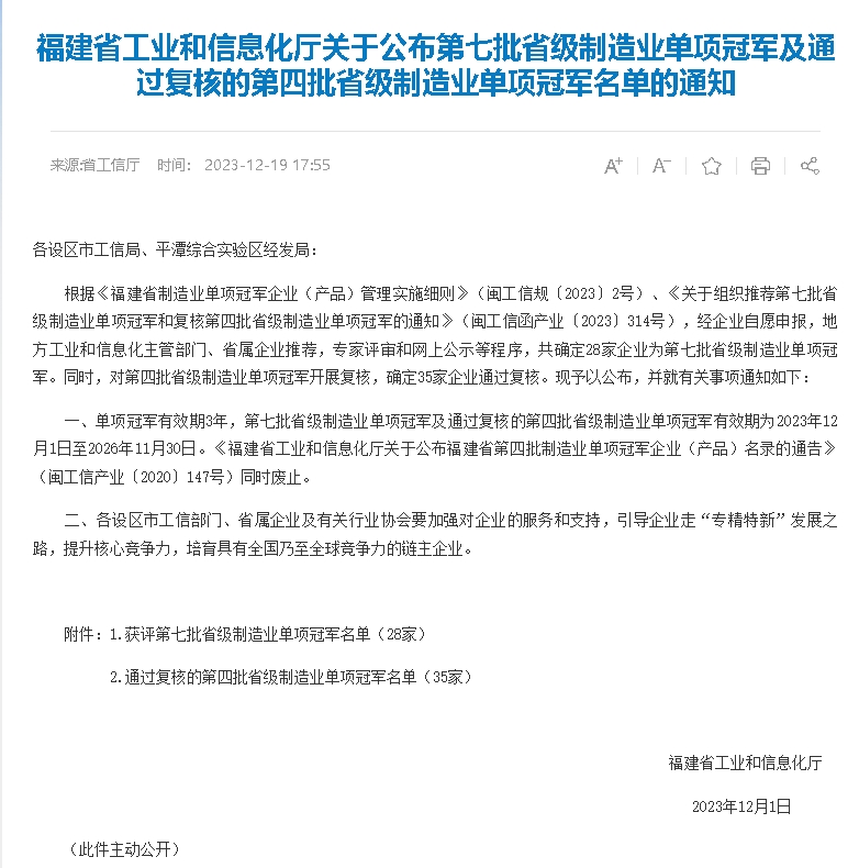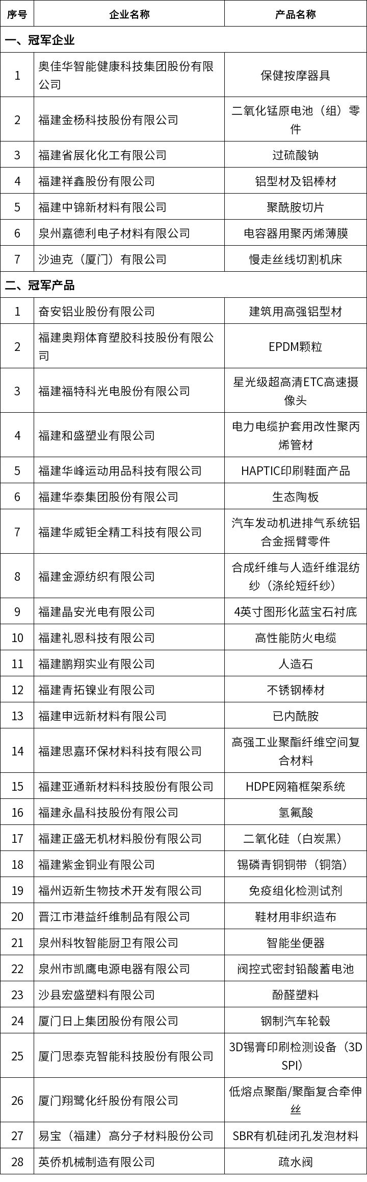 第七批省级制造业单项冠军及通过复核的第四批省级制造业单项冠军名单出炉