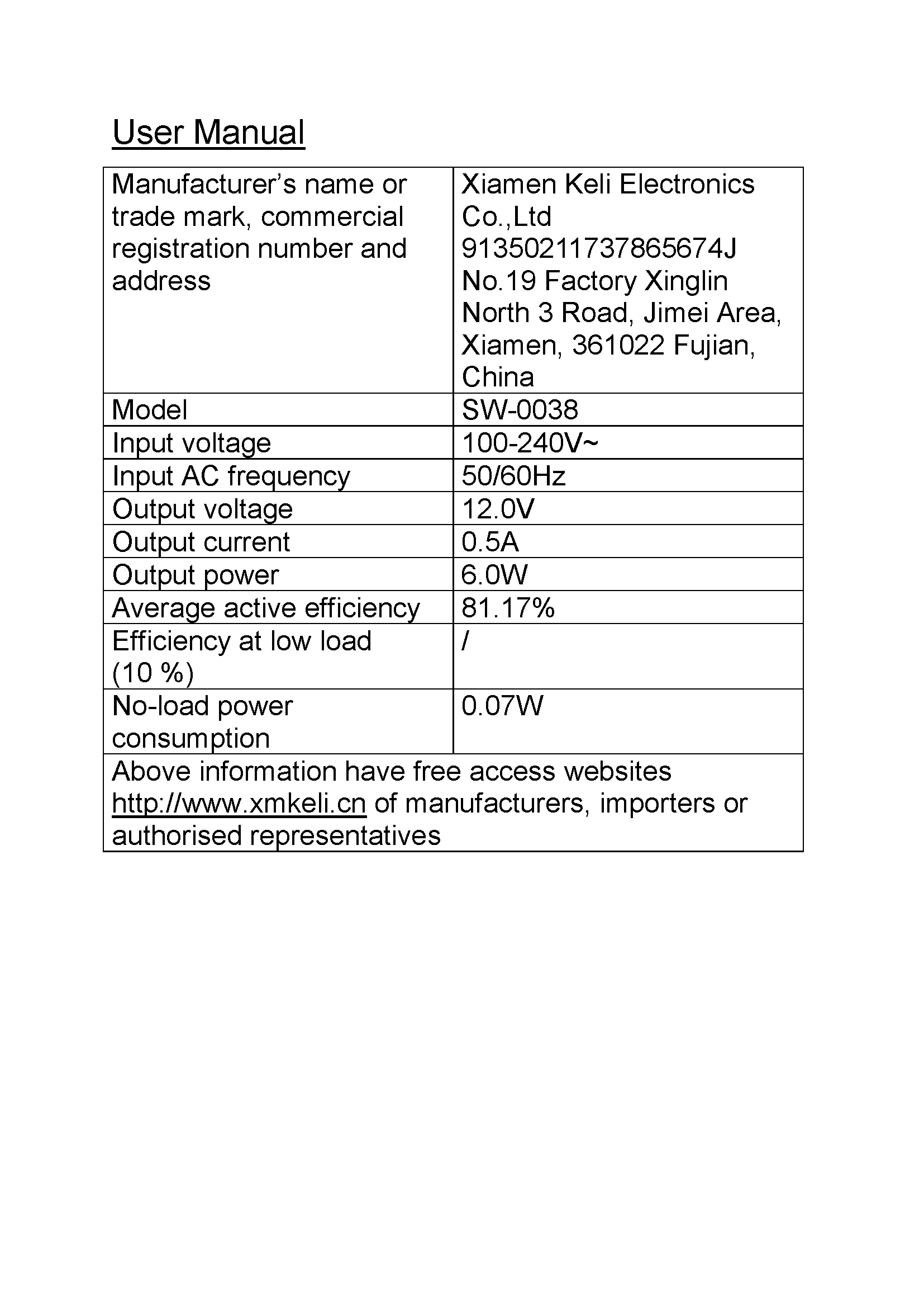 ERP information of production-11UM_ERP说明书 12.0V0.5A(2020.03.24)